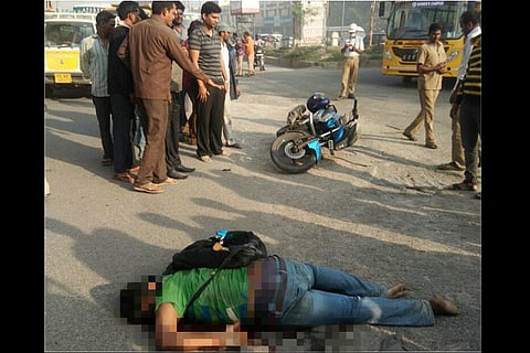It was reported that a scooter ahead of them slowed down to avoid a bad section of the road and to avoid hitting the scooter, Somashekar applied brakes. "Arun who was riding pillion, fell at a distance and died on the spot,” Kukatpally sub-inspector K Naidu said.