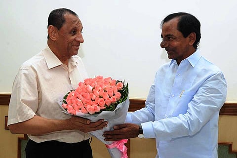 Telangana chief minister K Chandrasekhar Rao on Sunday met governor E S L Narasimhan at Raj Bhavan in Hyderabad to seek suggestions for the Ayuta Chandi Yagam that he wants to perform in December, the Times of India reported.