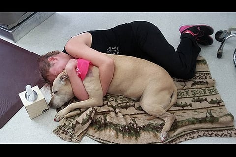 An Imgur post titled "Dogs are too amazing to let go, but sometimes it happens and they will forgive you", lists a series of pictures from the woman's snapchat where she chronicled Hannah the dog's last day.