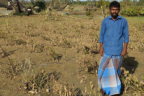 The storm surge scorched the paddy crop of Radhakrishnan Sivagnanam, whose post-cyclone yields have come down because of salinity