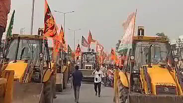 Nandeeshwar Goud, BJP’s candidate for the upcoming Telangana Assembly elections from the Patancheru constituency, filed his nomination on Thursday, November 9, by taking out a huge rally with bulldozers decked up with his party flags and saffron flags featuring Lord Hanuman, in violation of the Model Code of Conduct (MCC). Bulldozers have become a symbol of the BJP's style of providing ‘instant justice’ when in power, by demolishing homes under the garb of clearing illegal encroachments, often targeting Muslims. The Election Commission of India’s MCC clearly states that there shall be “no appeal to caste or communal feelings for securing votes. Mosques, churches, temples or other places of worship shall not be used as a forum for election propaganda.”