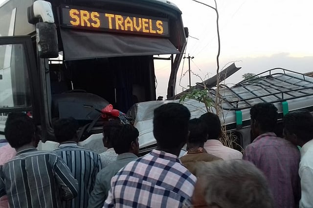According to the police, to save a two-wheeler rider, the bus driver hit the road divider and crashed into the MUV in the opposite lane. The victims hailed from the Jogulamba Gadwal district of Telangana and were returning to their village after attending an engagement ceremony.