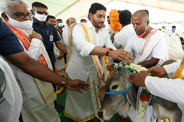 Andhra Pradesh Chief Minister YS Jagan Mohan Reddy on Friday participated in a cow puja in Narasaraopeta in Guntur district on the eve of Kanuma, when Kamdhenu puja (cow puja) is conducted at temples across the state.