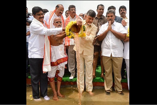 Amid the chanting of Vedic hymns by the priests, Naidu performed puja at the confluence of the two rivers. His cabinet colleagues and a large number of local people were present.