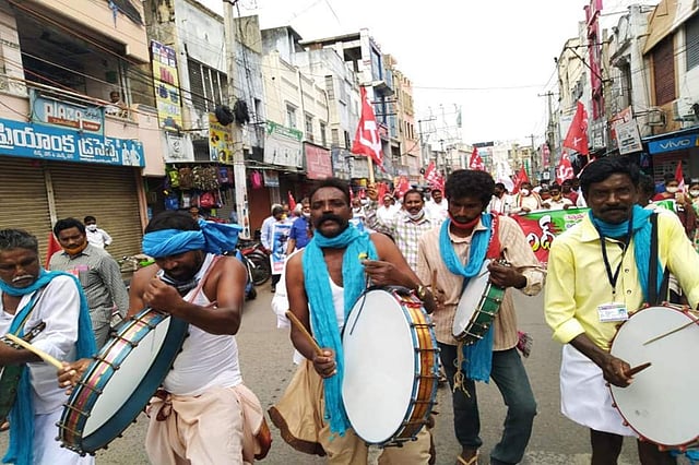 The CPI (M) party on Tuesday participated in large numbers in the Bharat Bandh, in solidarity with the protesting farmers against the new farm laws. The party activists took to the roads in Visakhapatnam, Tirupati, Guntur, Vizianagaram, Ongole, Srikakulam, Rajahmundry, Vijayawada, Kakinada and Prakasam and other regions raising slogans against the BJP-led union government.