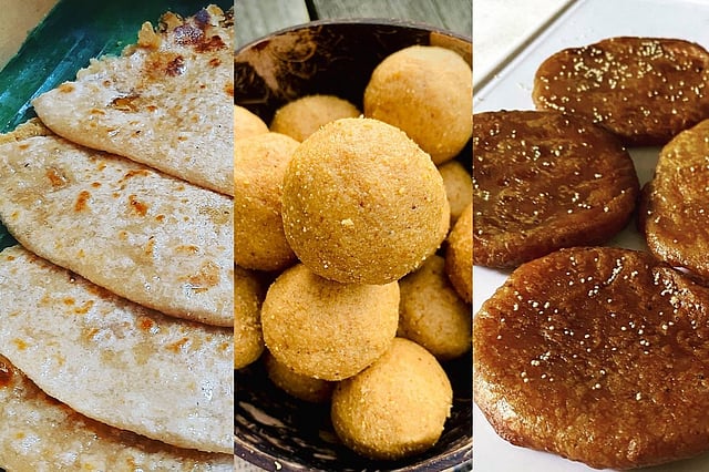 Rava Laddu is a variant of ladoo made with rava, coconut, ghee, warm milk, sugar and dry fruits. It is also known as Suji Laddu. According to cooks, preparing these laddus takes less than 60 minutes. Adding elaichi to it adds to the flavour. While some use fine powdered sugar for the preparation, some use sugar syrup, says Rajakumari.