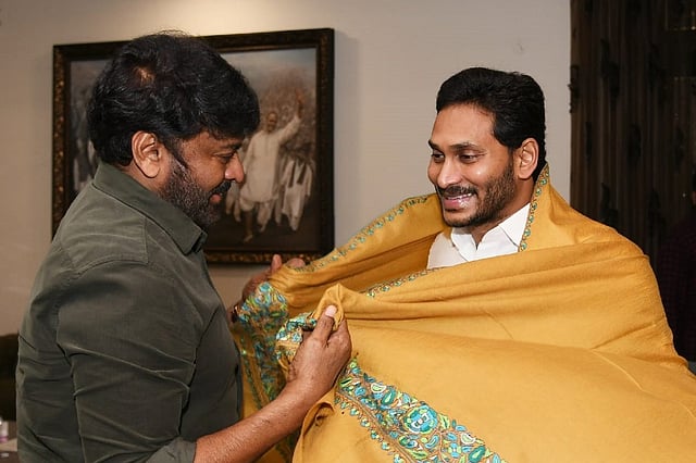 Amid a raging row between Andhra Pradesh government and Tollywood, the Telugu film industry, over movie ticket prices, megastar Chiranjeevi called on Chief Minister YS Jagan Mohan Reddy on Thursday, January 13. On the invitation of the Chief Minister, Chiranjeevi had a meeting with him over lunch at the latter's official residence at Tadepalli in Amaravati.