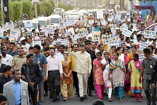 Naidu also received the backing of anti-trafficking crusader Sunitha Krishnan, who took to Twitter, and said, "It is not common for a Chief Minister of a state to walk for 2.5 km as a mark of protest and commit to end sex crimes against women and children. Maybe he had political reasons, but to me he is a leader who had the guts to take a problem upfront and state his position."