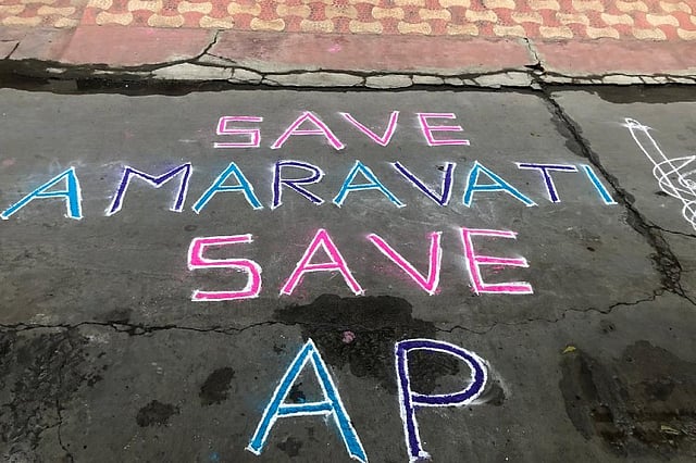 On new year’s eve, as the protests entered the fifteenth day, colourful patterns were drawn in the streets of Amaravati villages, with many of them reading ‘Save Amaravati, Save Andhra Pradesh.’