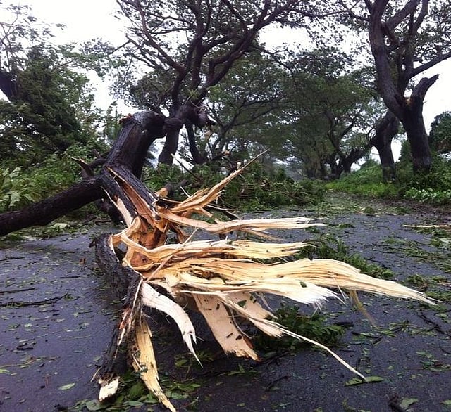 The News Minute | October 12, 2014 | 3.25 pm ISTCyclone Hudhud has hit the eastern coast of India at Vishakapatnam and its effects are spread across Odisha, Andhra Pradesh, Telangana, and Chhattisgarh, bringing heaving rainfall to parts of these states.Since it made landfall at Visakapatnam, its effects will be "very severe" for the first six hours, and gradually lose momentum over the next six hours to be "severe". We bring you some pictures from Visakapatnam:The heavy downpour accompanied by powerful winds with speeds reaching up to 185 kmph uprooted trees, felled electricity and communication towers and caused widespread destruction to crops.The districts of Visakhapatnam and Srikakulam are without electricity since Saturday night. Mobile telephones were not working in the region as communication network collapsed.With trees and poles falling on highways, the vehicular traffic came to a complete halt while railways cancelled all services in the region.The "very severe cyclonic storm" in the Bay of Bengal started crossing the coast around noon at Pudimadaka, about 50 km from this port city.The cyclone disrupted the functioning of the Visakhapatnam Cyclone Warning Centre here. The centre lost contact with the radar tracking the cyclone. The officials were relying on the navy radar for information.Two people were killed in Visakhapatnam while another died in Srikakulam district. Two deaths occurred due to falling trees and one due to a wall collapse. Chandrababu Naidu announced a compensation of Rs.5 lakh each to the families of those killed, Rs.1 lakh for critically injured and Rs.50,000 for other injured.
