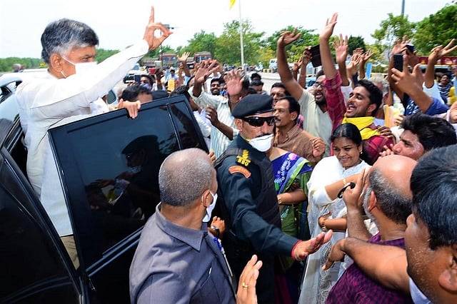 As TDP chief Chandrababu Naidu arrived in Andhra Pradesh for the first time in nearly 2 months, scores of people thronged to welcome him at different places, ignoring physical distancing norms and creating risk of COVID-19 infections. Naidu, who had been staying at his Hyderabad residence since the lockdown began, reached his Undavalli residence in the Amaravati capital region on Monday afternoon.