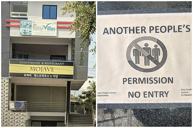 The guest house-cum-restaurant, Mojave located at Ram Nagar, was opened a year ago, said one of its employees. A poster put up outside the restaurant reads, “Another people’s permission. No Entry (sic).” It then goes on to list different contact numbers for Indians and South Koreans.