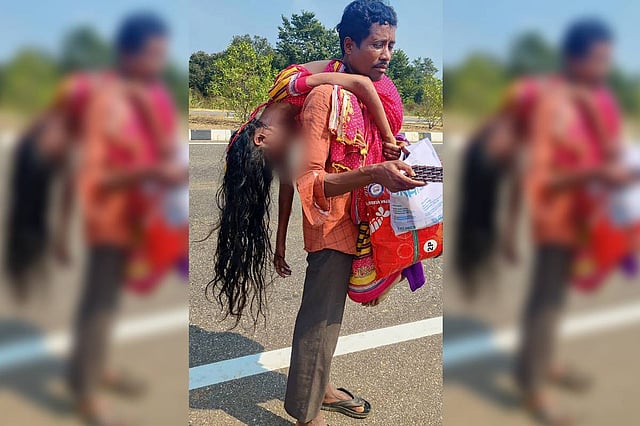 A 35-year-old man from Odisha's Koraput district walked several kilometres with his wife's body on his shoulder after she died in an auto-rickshaw while returning from a hospital in neighbouring Andhra Pradesh on Wednesday, February 8. Policemen spotted Samulu Pangi and arranged an ambulance to take the body of his wife Ide Guru (30) to his native village Sorada in Pottangi block.