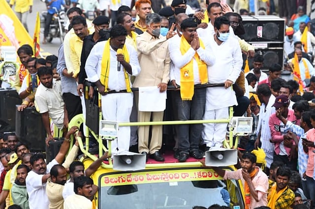 The roadshow saw a large turnout as several party workers from neighbouring constituencies and districts had thronged to Kuppam. Meanwhile, a TDP worker reportedly died after coming in contact with a live wire while he was tying a party flag atop a private bus carrying TDP workers to the meeting.
