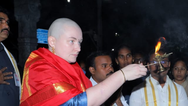 The next day, Lezhneva reached Tirumala. She signed a religious declaration form affirming her faith in Lord Venkateswara before offering her hair to the deity as a mark of gratitude.