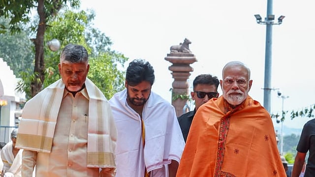 The Prime Minister reached Srisailam amid tight security and was accompanied by Chief Minister N Chandrababu Naidu and Deputy Chief Minister Pawan Kalyan. Temple priests and officials welcomed them at the main entrance of the temple. They participated in various rituals at the temple.