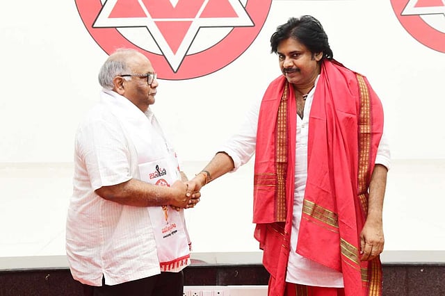 Senior Telugu film producer BVSN Prasad joined actor-politician Pawan Kalyan’s Jana Sena Party on Monday, June 12, after meeting the latter at JSP’s headquarters in Mangalagiri, Andhra Pradesh. Prasad was welcomed into the party by Pawan Kalyan who felicitated him with JSP's scarf. Prasad has produced several hit movies including Chatrapathi, Magadheera, Darling, Nannaku Prematho, Tholi Prema and the recently released Virupaksha.