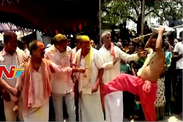 According to reports, the devotees offer their prayers to the local deity, before the chief priest carries a 'vigraharam' on his head and begins kicking people.