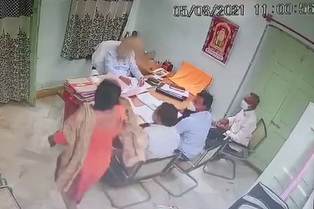 In a dramatic incident at a government office in Visakhapatnam on Thursday, August 7, an official of the Andhra Pradesh Endowments Department barged into the office of her immediate senior and flung sand in his face, alleging workplace harassment on his part. CCTV footage showed Endowments Department Assistant Commissioner K Santi suddenly entering the office of Deputy Commissioner Pushpa Vardhan and throwing sand at him in the presence of a few colleagues who were already in the room. While Santi has alleged that Pushpa Vardhan has been mentally harassing her and other subordinates in the department over the past few weeks, Pushpa Vardhan denied the allegations, saying he has not interacted much with staff members since his recent posting.