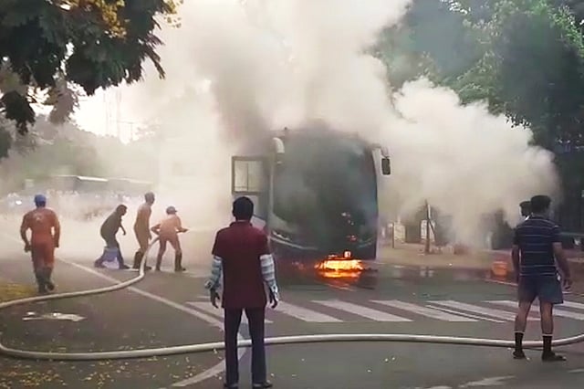 In the videos that surfaced, the fire personnel were seen pumping water into the driver’s cabin in the bus in an attempt to douse the flames. Smoke was seen billowing from the burning bus. Several people had gathered to see the dramatic scene and many were seen recording the same. Once the flames were brought under control, the fire personnel tried to open the emergency door in order to let the trapped smoke escape from inside the bus.