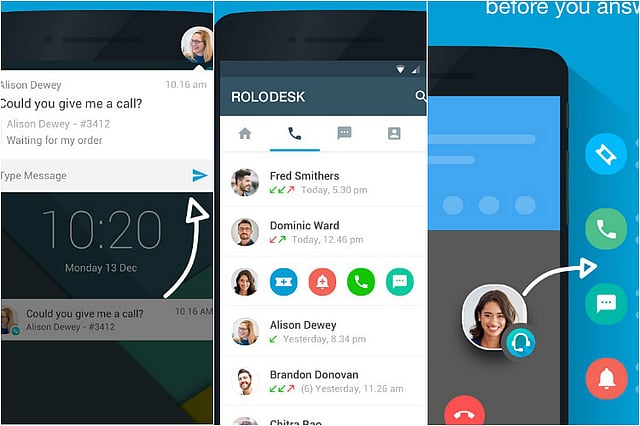 And finally, the Roloscope – which the company says is its most important feature – is a floating bubble that appears on the screen with a customer calls. All you have to do is tap on the bubble to get a complete history of the customer – what the ticket is about and what previous conversations you have had with them.
