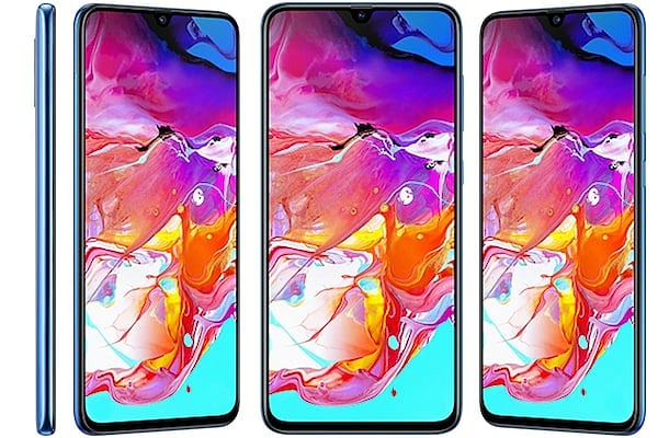 The Samsung Galaxy A70 costs Rs 28,990/- and is available in three colour options – black, white and blue.