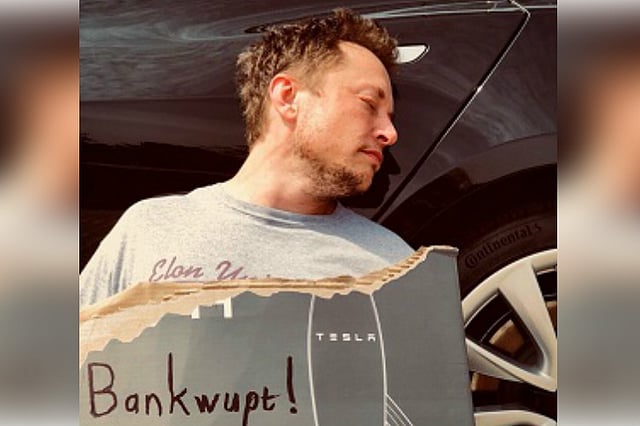 Musk also posted his photo with the tweets in which he was seen sitting with a "bankrupt" placard in his hand.