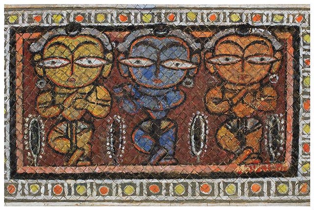 Image courtesy: DAG Modern; Sakti Burman, Untitled (Girls with flowers), oil on canvas, 1960s.