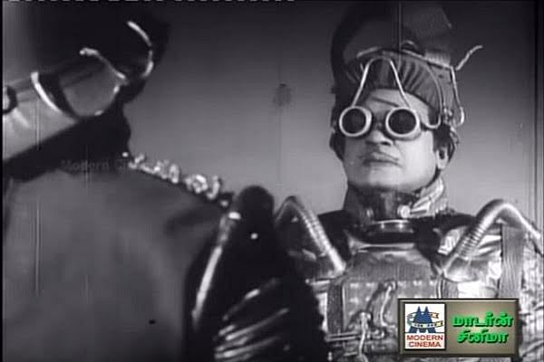 ‘Neelavaana pandhalin keezhe, nilamadandhai madiyin mele Kaladevan arasangam nadakudhada,’ ('Under the blue skies and amidst the seas of the earth, the people are under the reign of the Lord of time) he sings. It’s an oddly on-point song, for a film more than half a century old that is ahead of its time in being one of the first examples of Tamil science fiction.