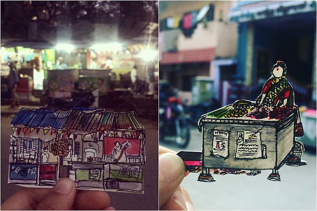 What started as a quick way to substitute live-sketches, 'Madras In Mini' shaped up to be a whole different project that helped put Hemalatha under the spotlight. Her sketches had the ubiquitous tea-kadai, flower-seller and even the drishti bommai you find on lorries.