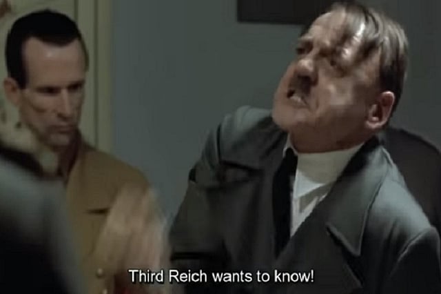 “Hitler reacts to…” is a Youtube phenomenon in which users subtitle a key scene of the German film Der Untergang, Downfall, (in which Hitler berates his senior officers for failing in the war against the Allies), to talk about just about anything that catches their fancy.