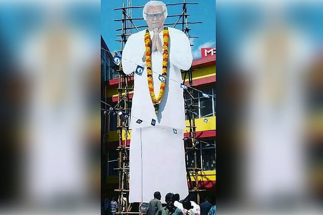 A giant cut-out has been erected for Vijay Sethupathi at the Vetri Theatre complex in Chrompet and fans performed ‘Paal Abhishekam’ on it recently. The actor, known for his realistic portrayal in films, is currently busy with Seethakathi, directed by Balaji Tharaneetharan. The star’s look, as an old man in the film was out a few weeks ago and it went viral as expected. According to reports, Vijay Sethupathi plays a drama artiste in Seethakathi.