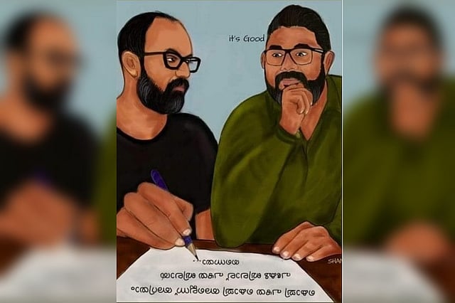 Meanwhile, actor Soubin Shahir has posted a picture on Instagram with Amal Neerad and captioned it Big B. It appears the prep work to get Bilal on the floors have begun. Also, writer Unni R came up with a new caricature of himself with the director. Unni R is seen writing the dialogues and Amal Neerad is giving his approval. The written dialogue in the picture has a line made famous through the prequel -- Kochi pazhaya Kochi alla (Kochi is not the old Kochi), and adds another -- Pakshe Bilal pazhaya Bilal thannaya (but Bilal is the old Bilal).