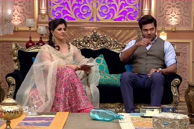 Meanwhile, actor Varalaxmi Sarathkumar made an appearance on Enga Veetu Mappillai, the Tamil version of the reality TV show The Bachelor, to interact with the prospective brides. Since actor Arya is a Muslim - his real name is Jamshad - one of the questions she asks the women on a one-on-one basis is, "Jammy (Arya) will not expect it, but if he does, will you be willing to change your religion?"