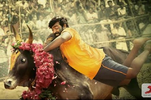 Set in a village, the movie revolves around the life of Jallikattu enthusiast Karuppan played by Vijay. In one bullfighting contest, he meets Maayi (Pasupathy) who promises to let him marry his sister if he manage to tame his bull. What happens next is more predictable than Rajini not dying after taking bullets to the chest in Kabali.