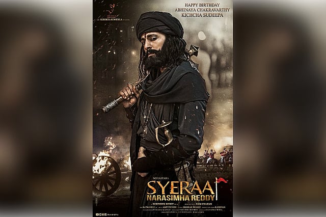 It is well known that Kannada star Kiccha Sudeep will be playing an important role in the upcoming Tollywood biopic, Sye Raa Narasimha Reddy. His first look in it has been released and it looks like he has an interesting role to play in the film. Clad in a full black outfit replete with a turban, Sudeep will be seen as Avuku Raja in it. The Kannada star is not new to the Telugu film industry as he has carved a niche for himself with two big hits, Eega and Baahubali, both of which were directed by SS Rajamouli.