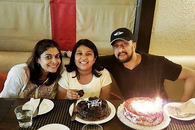 Sudeep and Priya met in 2000 and married a year later. Their daughter was born in 2004. Though Sudeep began his career with uncredited roles, he made his debut with the Kannada movie Thayavva in 1997. He stars in Kannada movies predominantly, but the star has also made a mark for himself in Hindi, Tamil, and Telugu film industries.