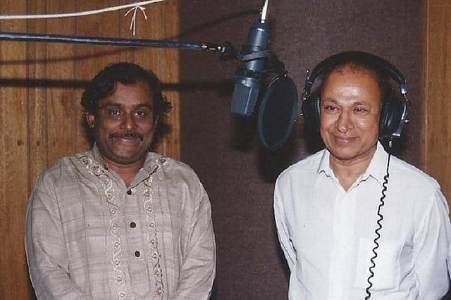 Born Gangaraju and working in his father’s printing press in Mandya, his guru Lavani Neelakantappa gifted him a swan (hamsa) pen, and named him Hamsalekha. From the early 1980s to mid-2000, he was the king of lyrics and music in Karnataka. In fact, he took a sabbatical to start an institute to encourage children to learn the indigenous art forms of Karnataka. He composed serious Hindustani classical songs in Gaanayogi Panchakshari Gavaayi, a movie about a blind saint from Karnataka. SPB won a National Award for his singing in this movie and Hamsalekha was awarded the Best Music Director.