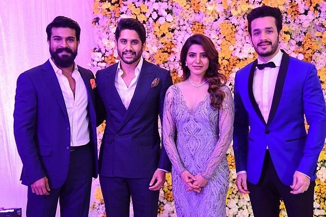 The who's who of Telugu cinema were all present at the chaysam wedding reception, with the likes of actors Chiranjeevi, Rana Daggubati, Ram Charan and filmmakers SS Rajamouli and Raghavendra Rao wishing the newly-weds.