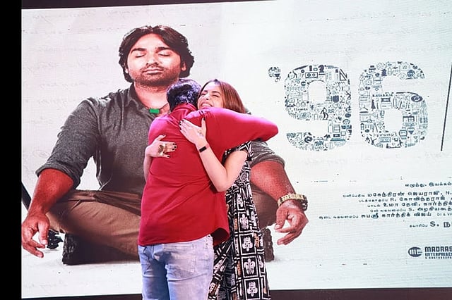 While hosting, Parthiban mentioned that he wanted to give a gift to 96 fans as many of them were disappointed that the lead pair Vijay Sethupathi and Trisha did not hug each other in the film till the end. He called the stars over to the stage requesting them to hug so that their fans would be pleased. Of course, the stars obliged to applause from the gathering.