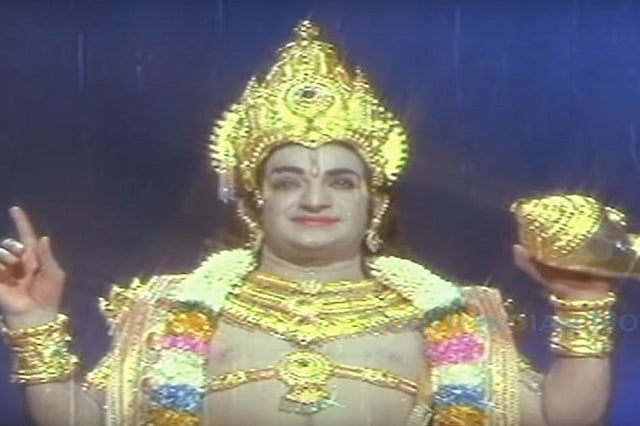 Such was the aura of NTR among his fans that he was cast as Lord Krishna in seventeen films, the first being the super hit film Maya Bazar in 1957. He even used to appear for public meetings during his stint as the CM in costumes of mythological characters. But how exactly did this depiction of gods help NTR in swaying the political discourse to his favour?