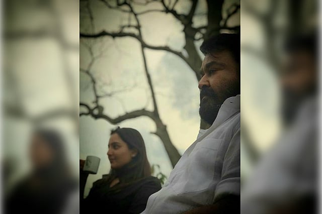 While the shooting for Lucifer is progressing at a brisk pace, pics from the shooting spots are being released officially for the fans to enjoy. Recently, on the official Facebook page of the film, a candid photo featuring Mohanlal and Manju Warrier was released with Prithiviraj credited for the pic.