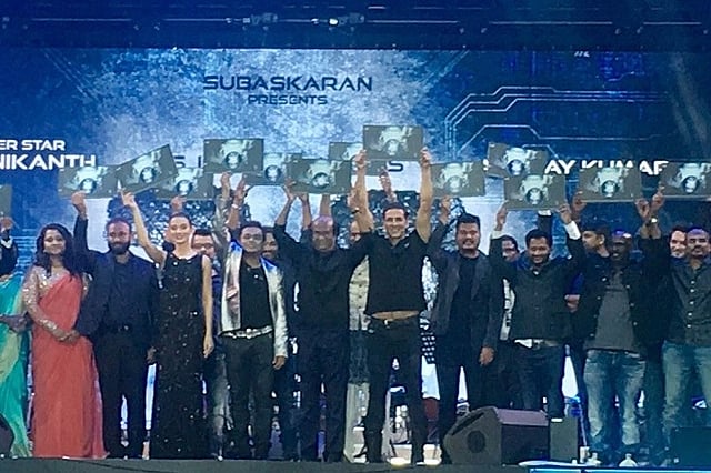 Akshay Kumar, who plays the chief antagonist, was all praise for Rajinikanth and said that he was the true superstar. He further added that he was excited to be part of a project so massive in scale.