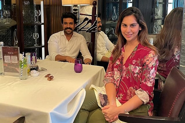 Entrepreneur Upasana Kamineni Konidela, recently shared images of herself and her husband, popular Tollywood actor Ram Charan, enjoying a romantic lunch date. In her social media post, Upasana mentioned that the two of them took out time from their busy schedules for a “mid-week break” and also added that they had the opportunity to go on a lunch date after a long time. Sharing a photo of the couple, she wrote, "Mid-week...Lunch break...Lunch date...Haven't done this in sooooo long." Upasana is seen in floral shirt and green trousers, while Ram Charan is seen donning a white shirt in the image.