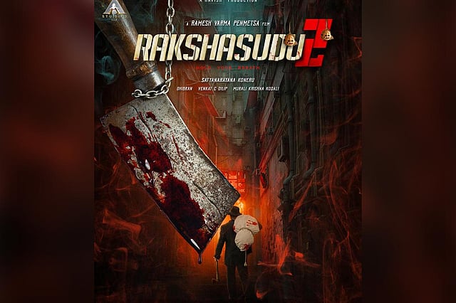 Director Ramesh Varma unveiled the title poster of his upcoming movie Rakshasudu 2 on Tuesday, July 13. The Telugu movie is the sequel of the hit crime thriller Rakshasudu, which released in 2019 and was also directed by Ramesh Varma. Featuring a bloodstained butcher’s knife with the silhouette of a man carrying a white body bag in one hand and an axe in the other, the poster sets the tone for a riveting crime thriller.