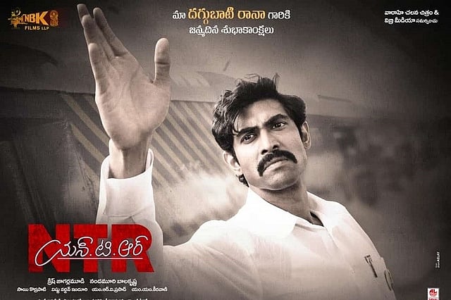 On the occasion of Rana's birthday on December 14, makers of the film have unveiled his look from the biopic. The actor appears in a white shirt which is Chandra Babu Naidu's political outfit with a badge of 'NTR' on his shirt pocket.