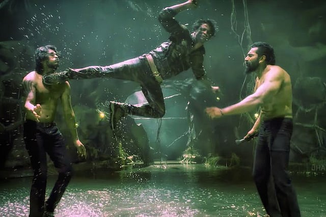 The fight sequences follow the tried and tested formulae of Kannada cinema – gangs of villains lay feeble blows on our hero, while he fells them with a single punch. Along their way down, the baddies bounce around in slow motion like giant tennis balls.