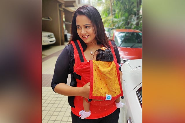 Actor Sameera Reddy recently become a mother for the second time, with her daughter Nyra coming into the world two months ago. And though being a mom to two young kids can be stressful, no doubt, Sameera has been quite keen on going places, and living her life with Nyra strapped to her – literally.