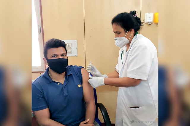 Sandalwood star Puneeth Rajkumar received the first dose of the COVID-19 vaccine on Wednesday. The 46-year-old actor took to Twitter to share a photo of him getting vaccinated. Encouraging people above the age of 45 to get vaccinated, the actor wrote, “Got my first dose of vaccination today. If you are 45 years & above ensure you get vaccinated. #vaccinated #