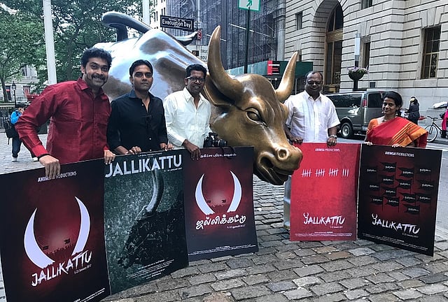 The poster for Jallikattu 5-23 January 2017 was unveiled in New York on 4 June, with Nirupama saying, “It was a conscious decision, due to the similarities of the jallikattu movement and the Occupy Wall Street movement.” Given the people-oriented message of the film, Santhosh hopes that it will resonate with audiences everywhere on release.